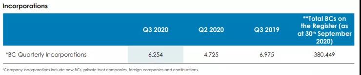 截至2020年9月30日,在BVI注冊的公司總數已達380,449家。新注冊的公司包括商業(yè)公司、私人信托公司、外國公司和延續(xù)公司。